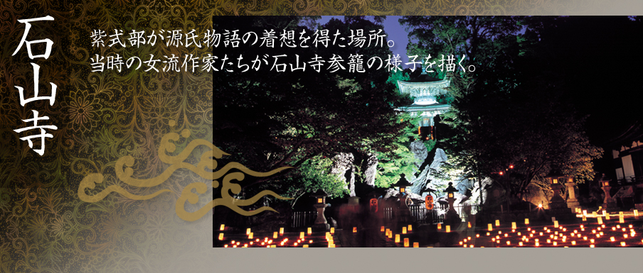 一方、平安時代には、霊験あらたかな石山の観音に詣でる「石山詣」が流行し、文学界を代表する女流作家たち―藤原道綱の母、清少納言、和泉式部、菅原孝標の女などが石山寺を訪れ、自身の作品に石山寺参籠の様子を描いています。特に、紫式部が七日間参籠して源氏物語の着想を得た場所としても知られており、その様子は、本堂に残る源氏の間によってうかがい知ることができます。